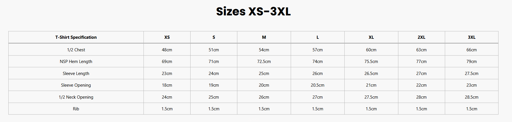 Please note: T-Shirts are true to size, should you prefer a more relaxed fit please order one size bigger. Larger sizes are available at additional costs.